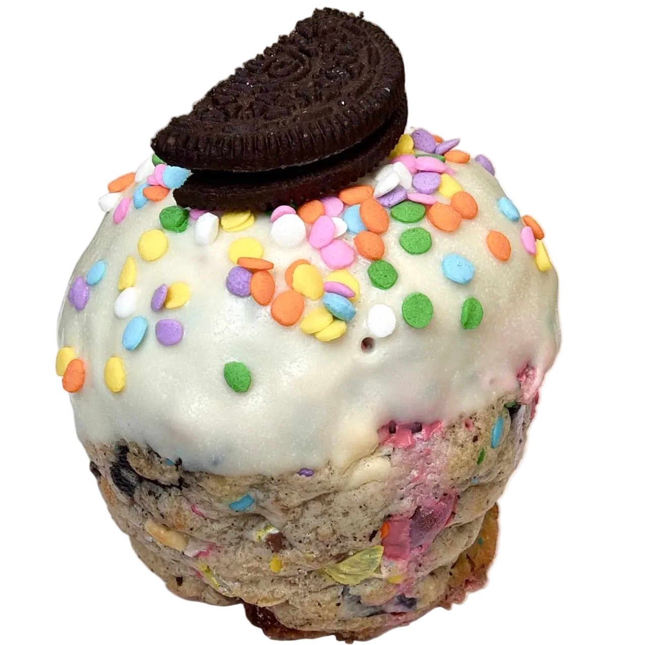 Each cookie is topped with a white chocolate shell, pastel rainbow quins and a classic Oreo® cookie for the perfect mix of creamy, crunchy, and nostalgic textures.